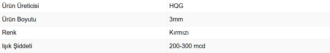 3mm Kırmızı Led - 200-300mcd - 10 Adet